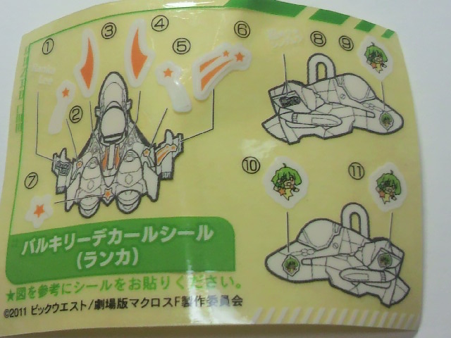 本当はもう一つのピンズっぽいキーホルダーの方が可愛いのでやってみたかったのですが、無かったので発見したマクロスFスイングをガチャガチャ・・ランカちゃんとランカちゃんデカールのバルキリーが1個ずつ重なりましたが、結構いい確率で入手出来ました。ばっちりアルラン揃えました!